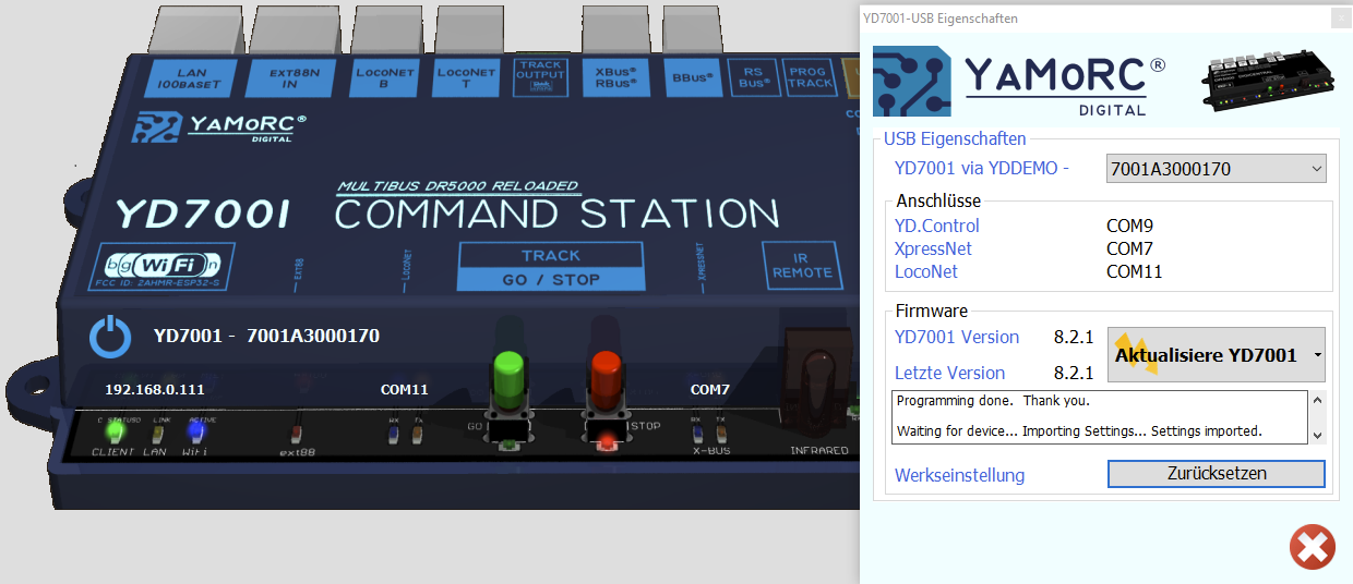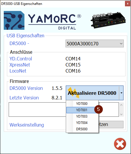Eine bereits bestehende DR5000 von Digikeijs kann per Software-Upgrade zu einer YD7001 von YaMoRC aufgewertet werden.
